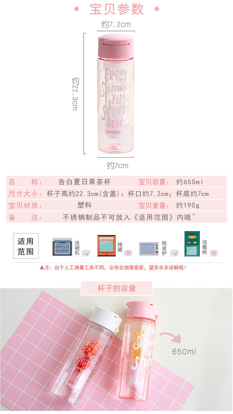 產(chǎn)品特點(diǎn):食品級材質(zhì),攜帶方便,杯口圓滑,650ML容量,一款滿滿少女心的隨手杯